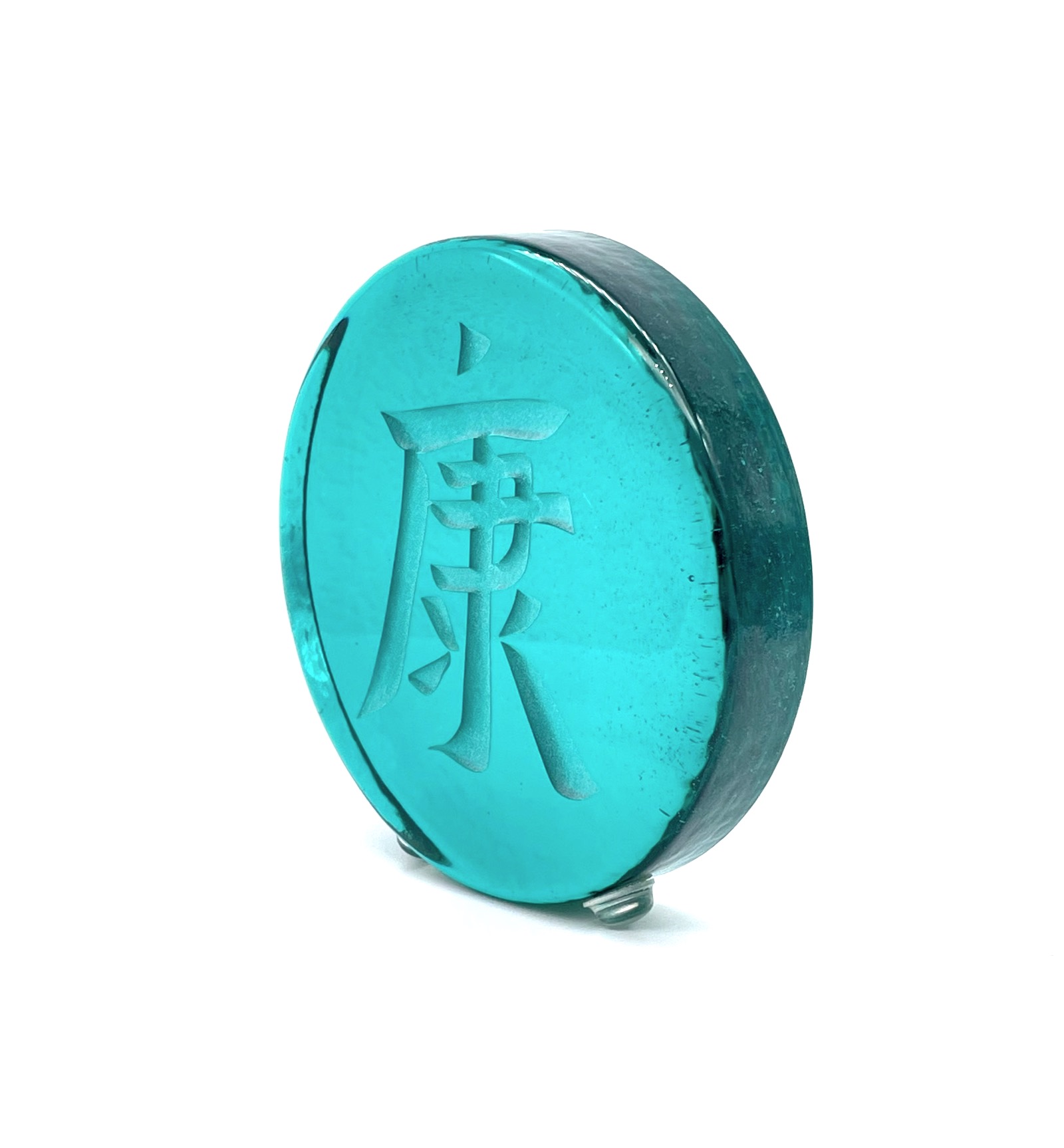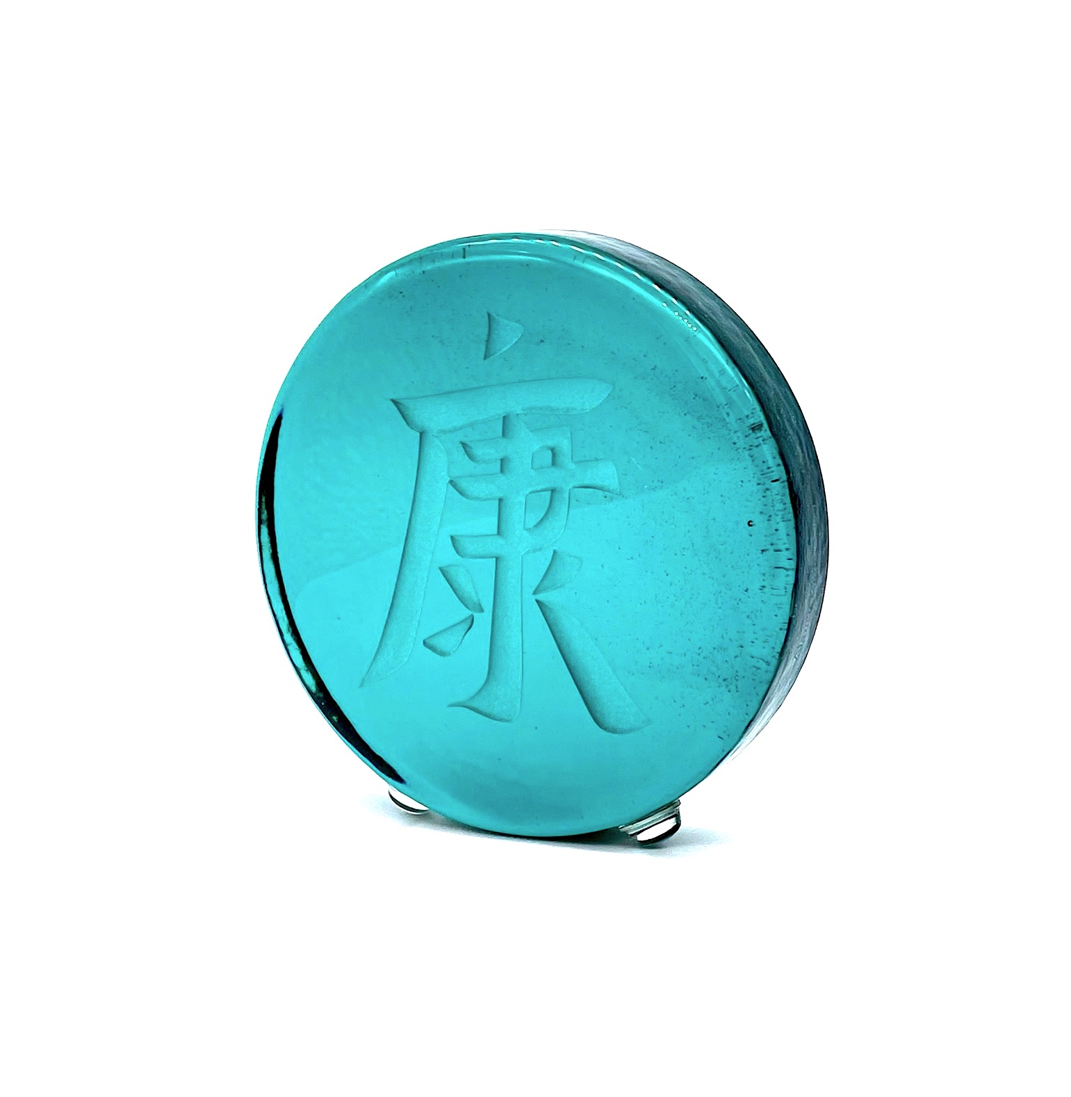 Art Glass Blessings are inspired by a Chinese tradition of hanging hollow brass calligraphy in one's home or business. It is a way of sharing a wish or "blessing" with occupants or visitors. Blessings are inspired by Nancy's Chinese heritage and her love for delicate silk embroideries. This hand-cast glass with the symbolic design of 'Good Health' is a perfect for a congratulatory presentation gift or professional gift giving.