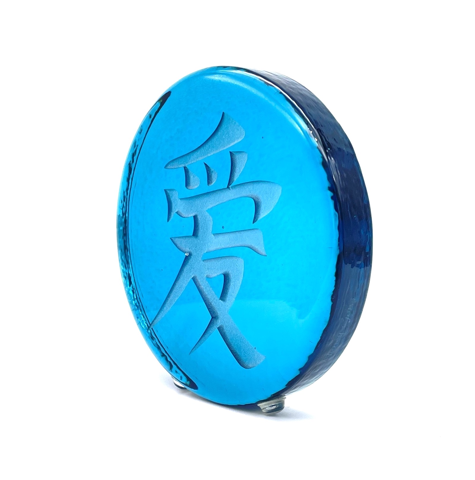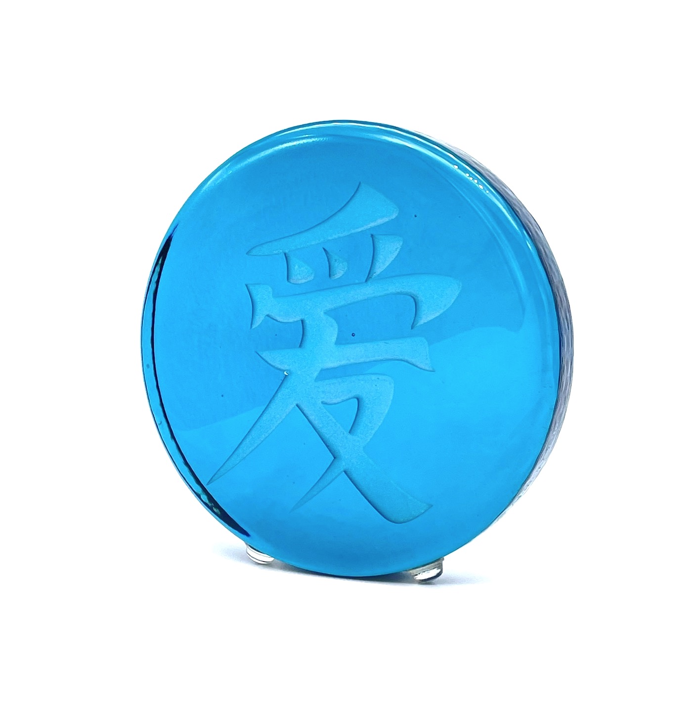 Art Glass Blessings are inspired by a Chinese tradition of hanging hollow brass calligraphy in one's home or business. It is a way of sharing a wish or "blessing" with occupants or visitors. Blessings are inspired by Nancy's Chinese heritage and her love for delicate silk embroideries. This hand-cast glass with the symbolic design of 'Love' is a perfect for a congratulatory presentation gift or professional gift giving.