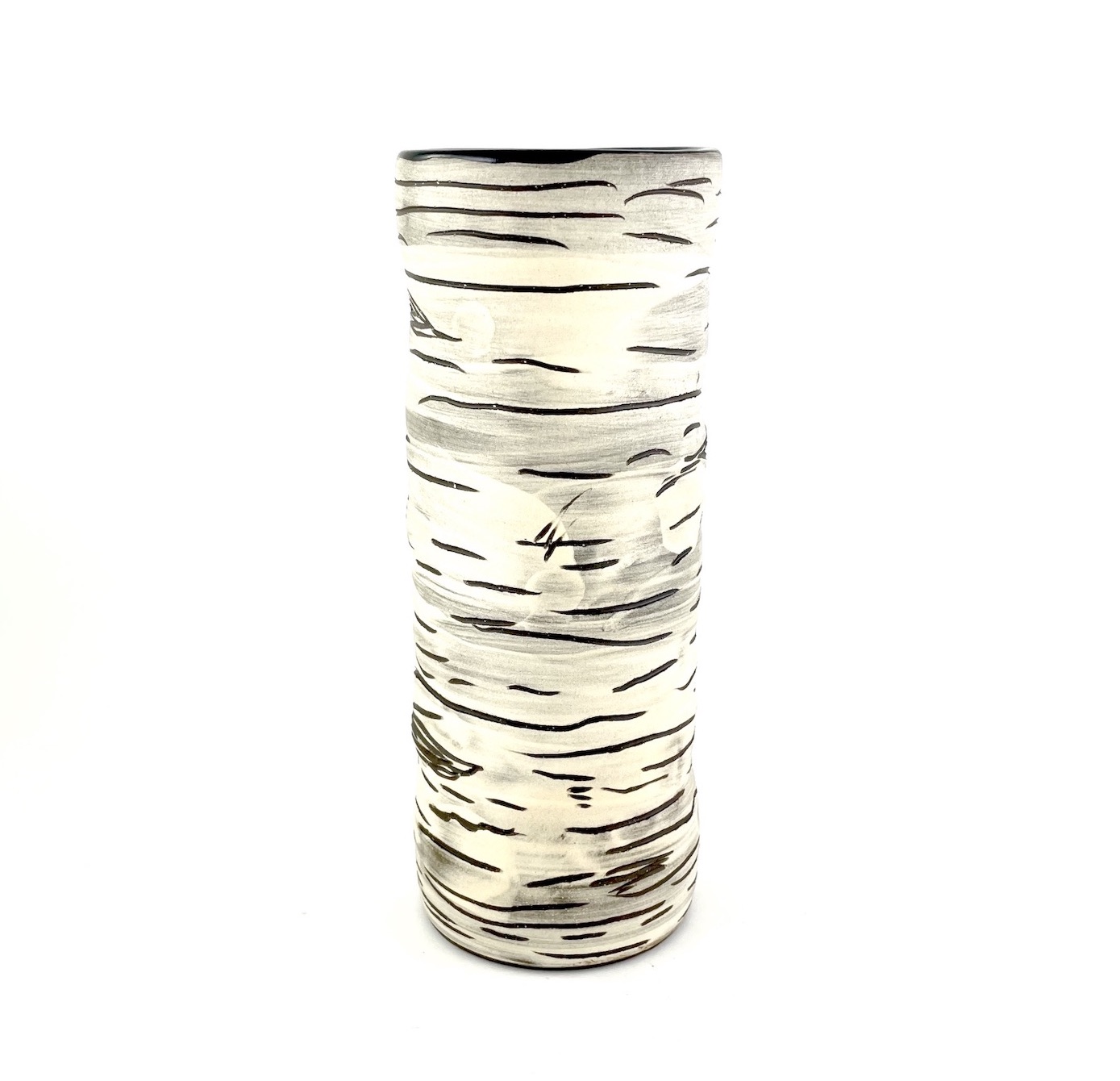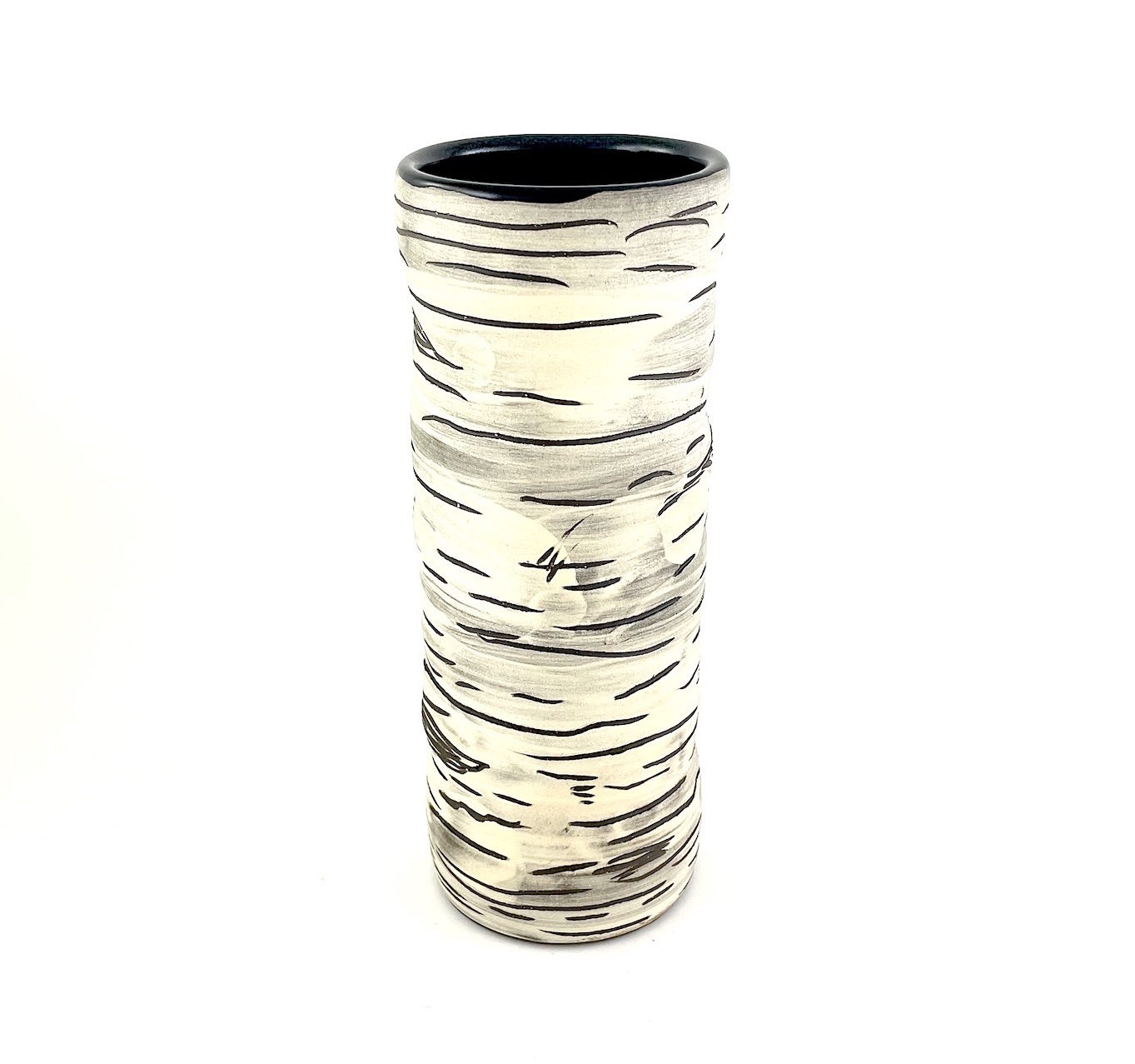 Kate plays with clay and this ceramic vase achieves trompe-l'œil status! A tall and slender piece that resembles a cut white birch branch is in fact glazed and will hold water and all bouquets you bring its way.