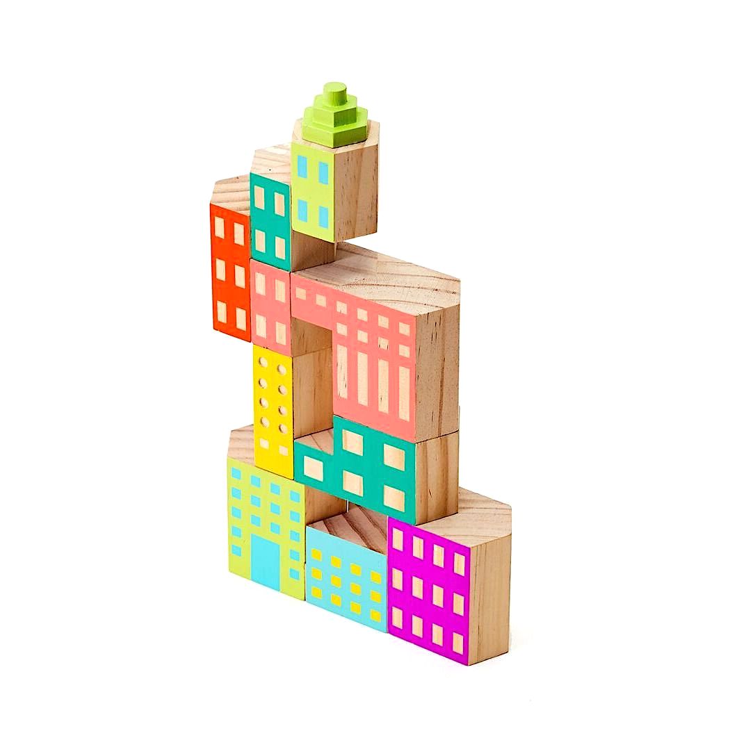 Build the world you want to see with Blockitecture®, a set of architectural building blocks. Cantilever and nest hexagonal blocks to create towers, cities and dwellings. The Deco set includes new colors and forms inspired by colorful post-modern architecture found coast to coast all over the world.