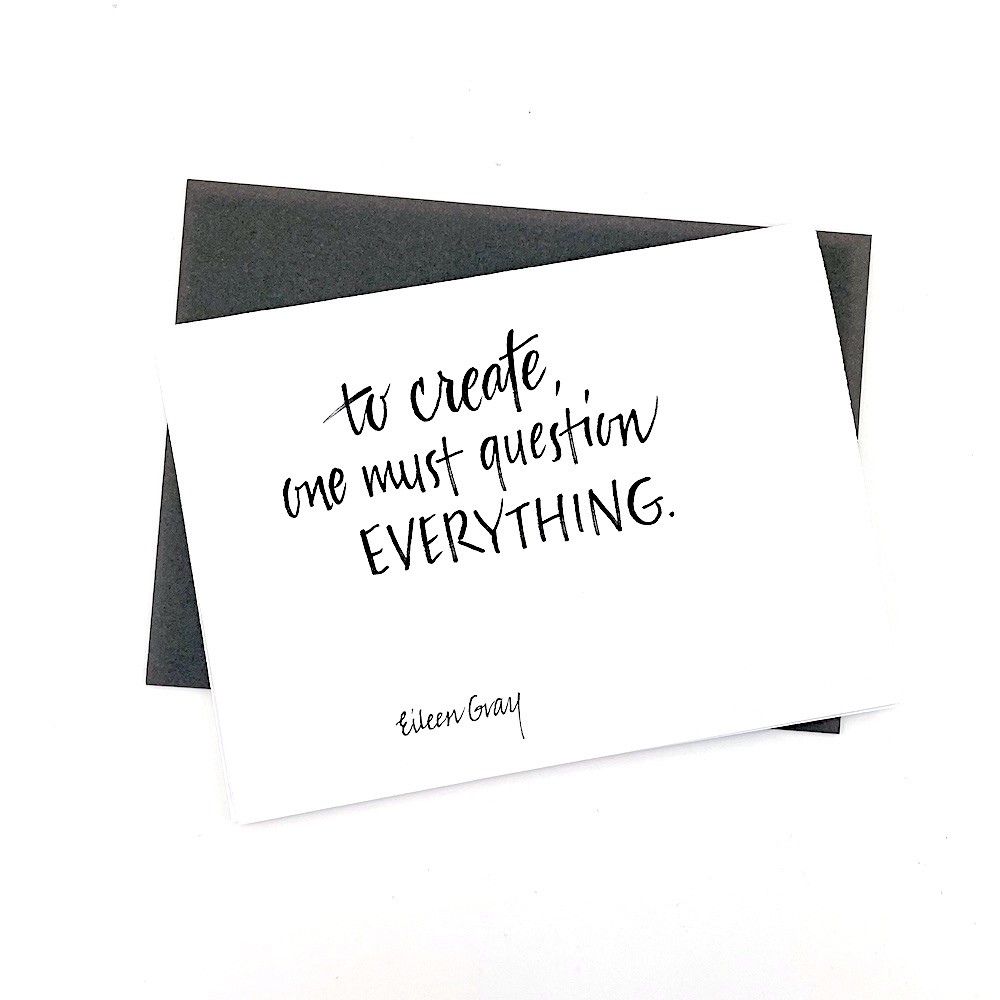 Designed by master calligrapher Lorrie Frear, this card sports a quote by Eileen Gray. Inside is blank so you can add your own unique message.