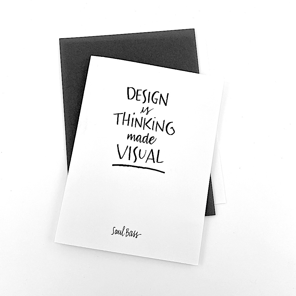 Designed by master calligrapher Lorrie Frear, this card sports a quote by Saul Bass. Inside is blank so you can add your own unique message.