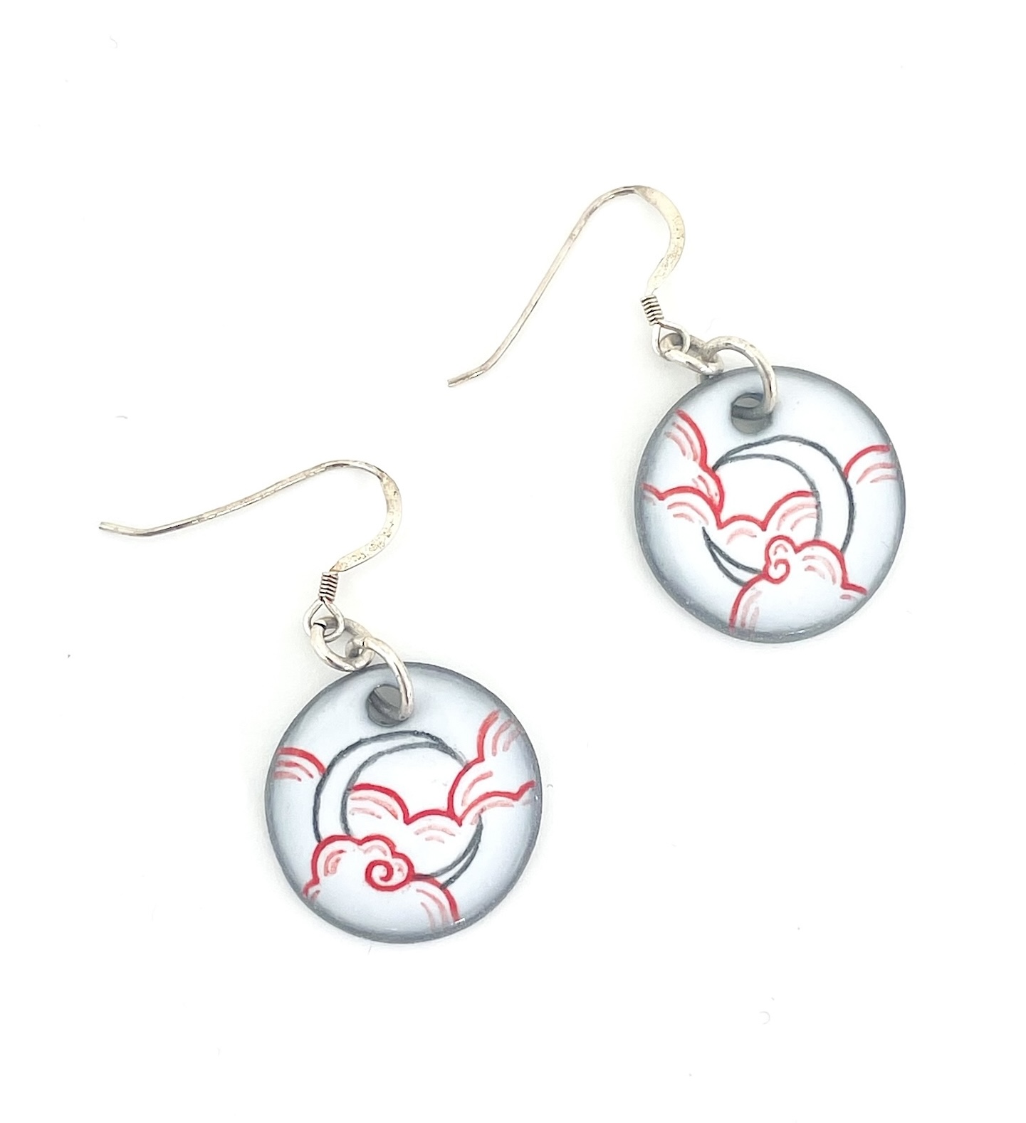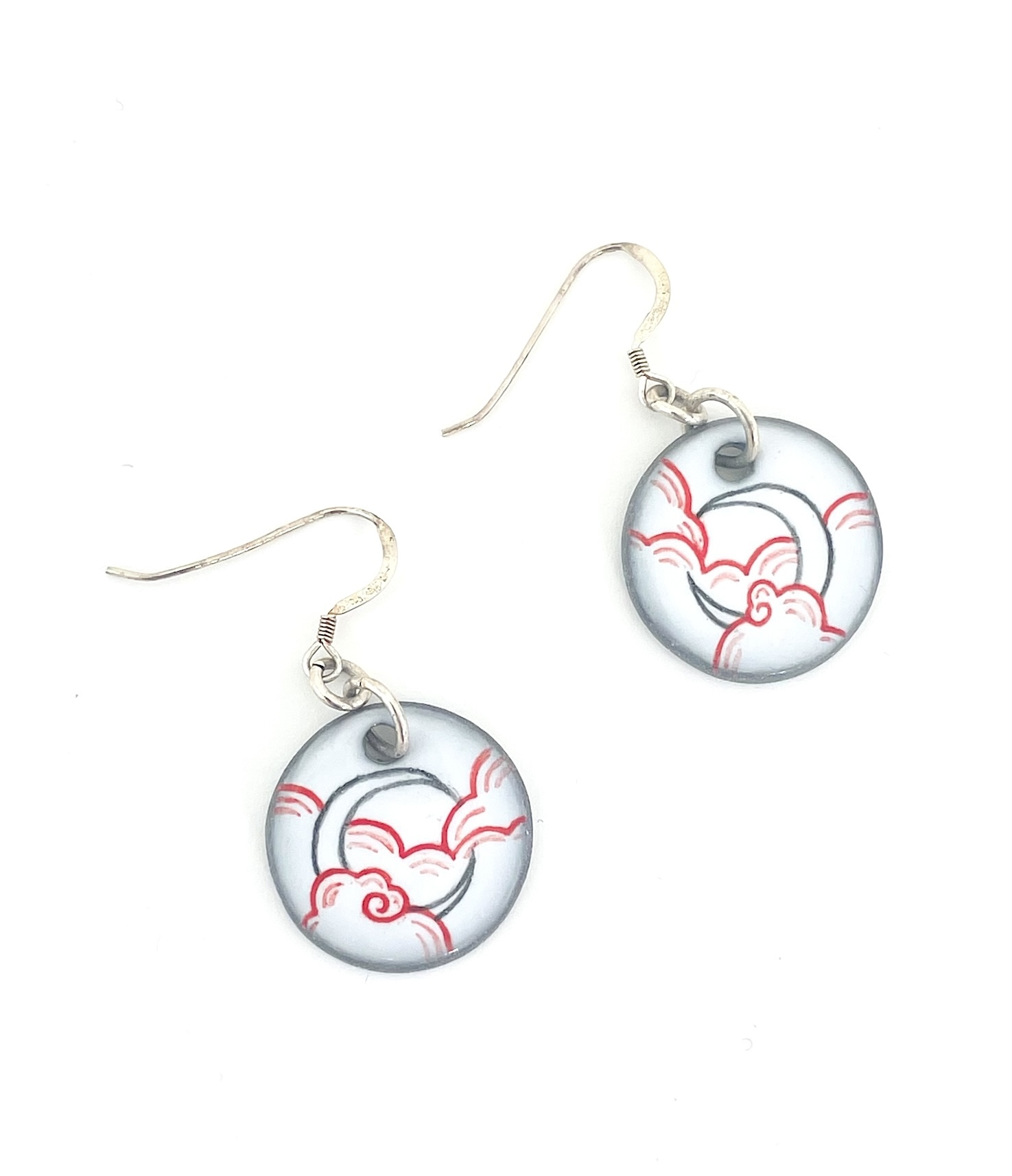 This one-of-a-kind set of earrings is hand cut, fired, hand-illustrated and painted. An underglaze is applied like watercolor which allows for a depth of shading and clarity of pigment. Your very own wearable masterpiece.