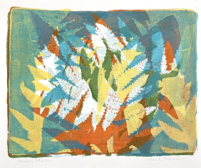 A one-of-a-kind mono print made with fresh botanicals collected from the landscape.