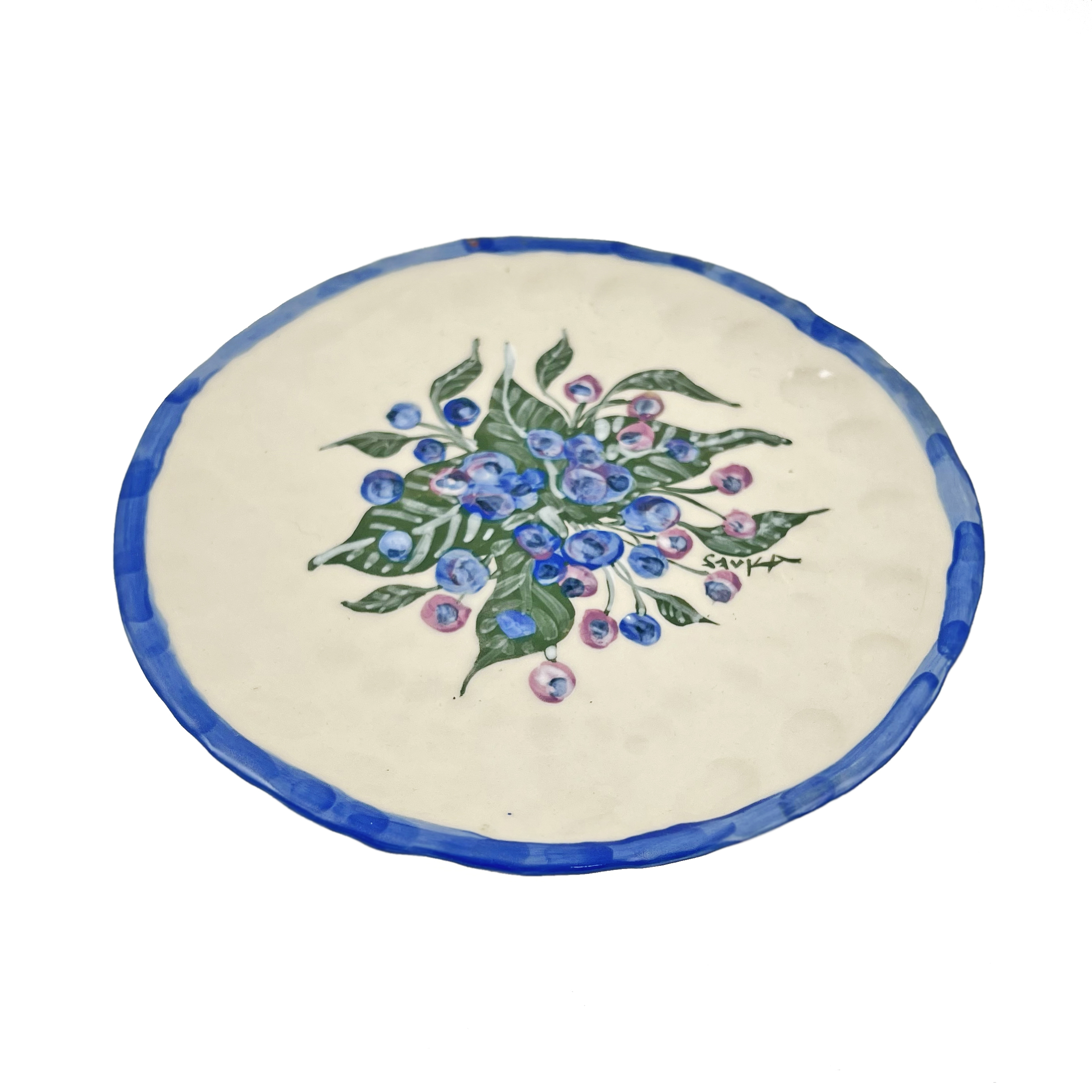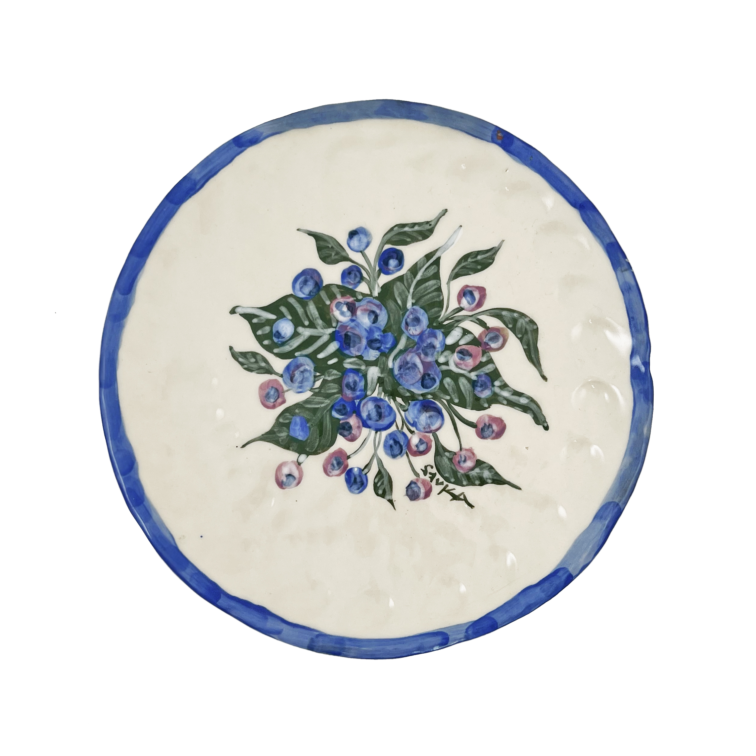 This one-of-a kind piece is shaped with the unique texture of Savka's signature hand-formed style. Illustrating a beautiful blueberry bunch, this piece is one to be the star of your collection.