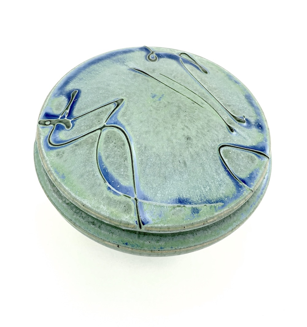 Richard's mastery of glazes and blending of hues, melds with a balance of form and function to create beautiful object for your environment. This lidded jar sports a lovely glaze and is useful in function.