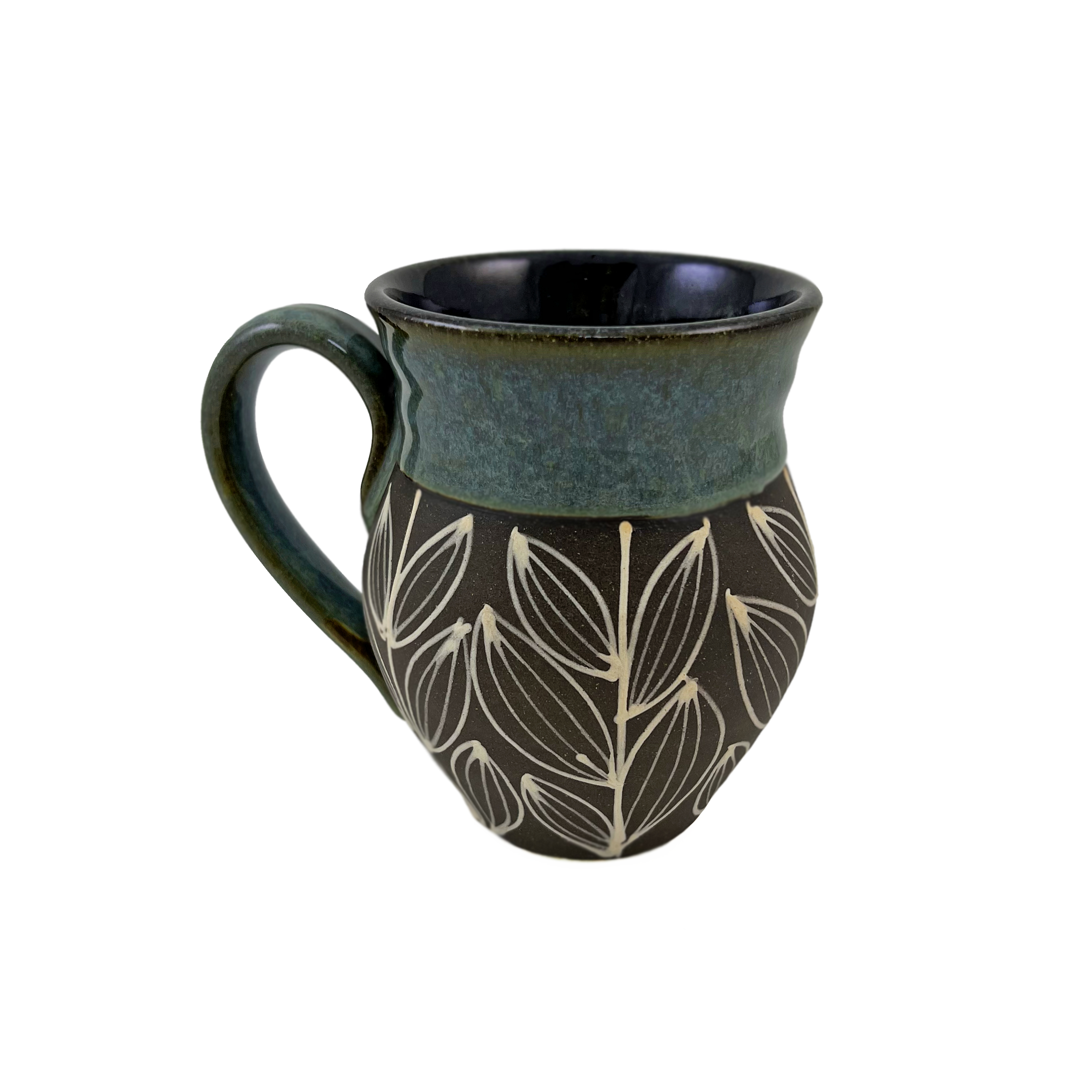 This beautiful mug is the perfect addition to your collection, adorned with hand-painted leaves and a lovely green rim. Whether it's a gift for a plant-lover, or a gift for yourself, this mug is sure to delight.
