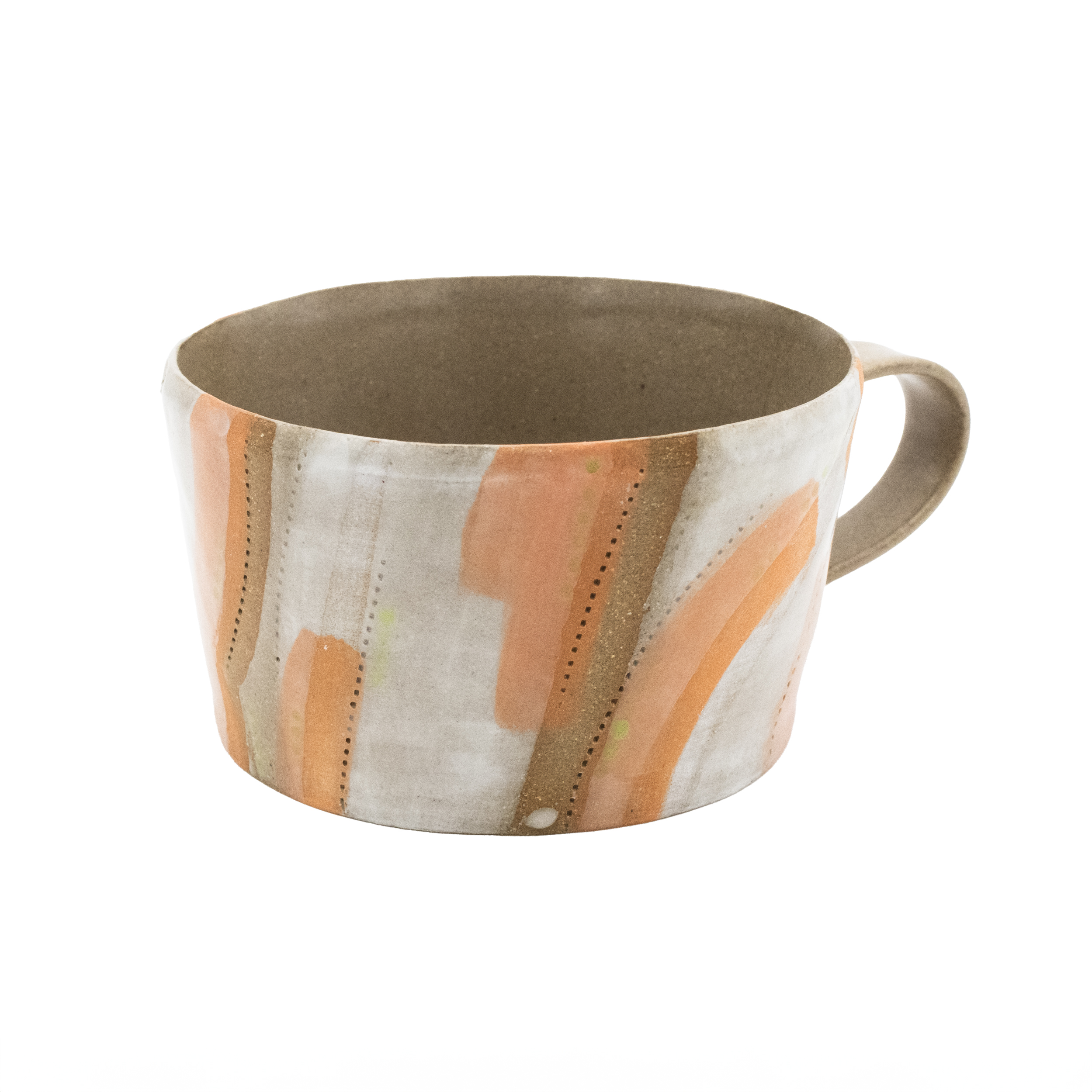 This refined trio of mugs explores the interplay of orange hues with ethereal themes, evoking warmth, transience, and a quiet sense of the sublime in everyday ritual. "Sunset", in particular, captures the fleeting glow of day’s end, with luminous tones that invite a moment of calm reflection in each sip! One-of-a-kind.
