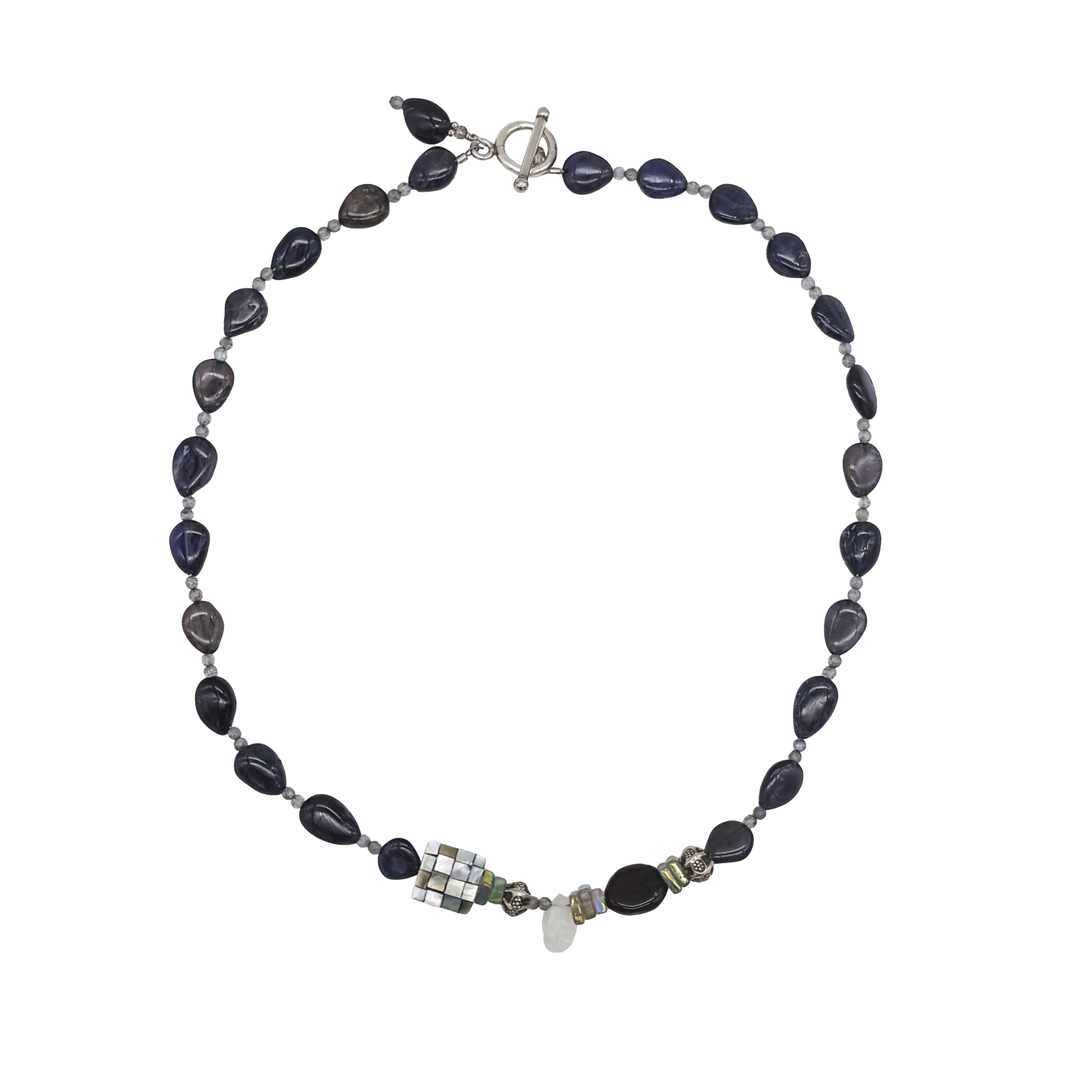 A beautiful necklace with iolite and labradorite. An elegant statement! One-of-a-kind