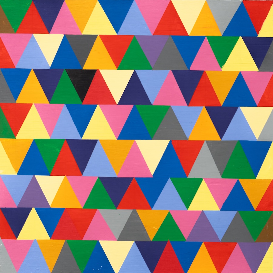 Organization is central to Roger's process. This piece is constructed on a grid which is left visible. The color palate and geometry is essential to the choice of shapes. Roger's process and expressions are an interplay between intuition and systems, design and art, concept and form, thinking and feeling.