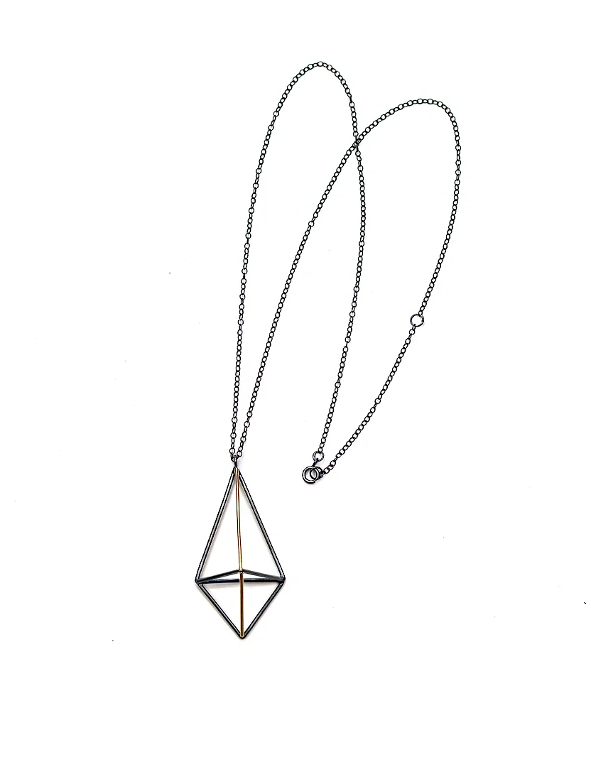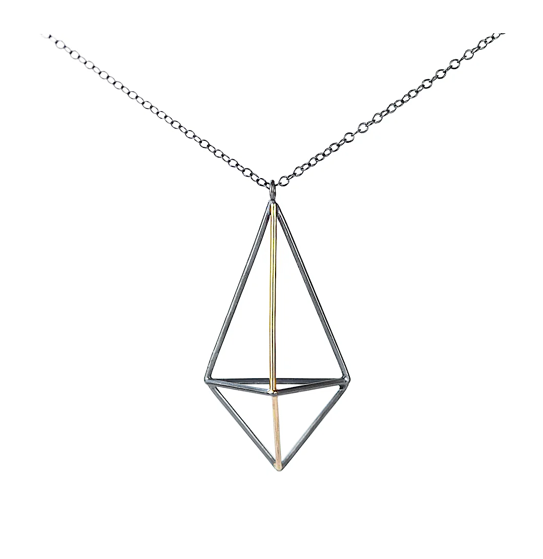 A striking pendant that showcases simple, elegant, and modern geometric shapes with complimentary finishes - Sterling silver and 14k gold.