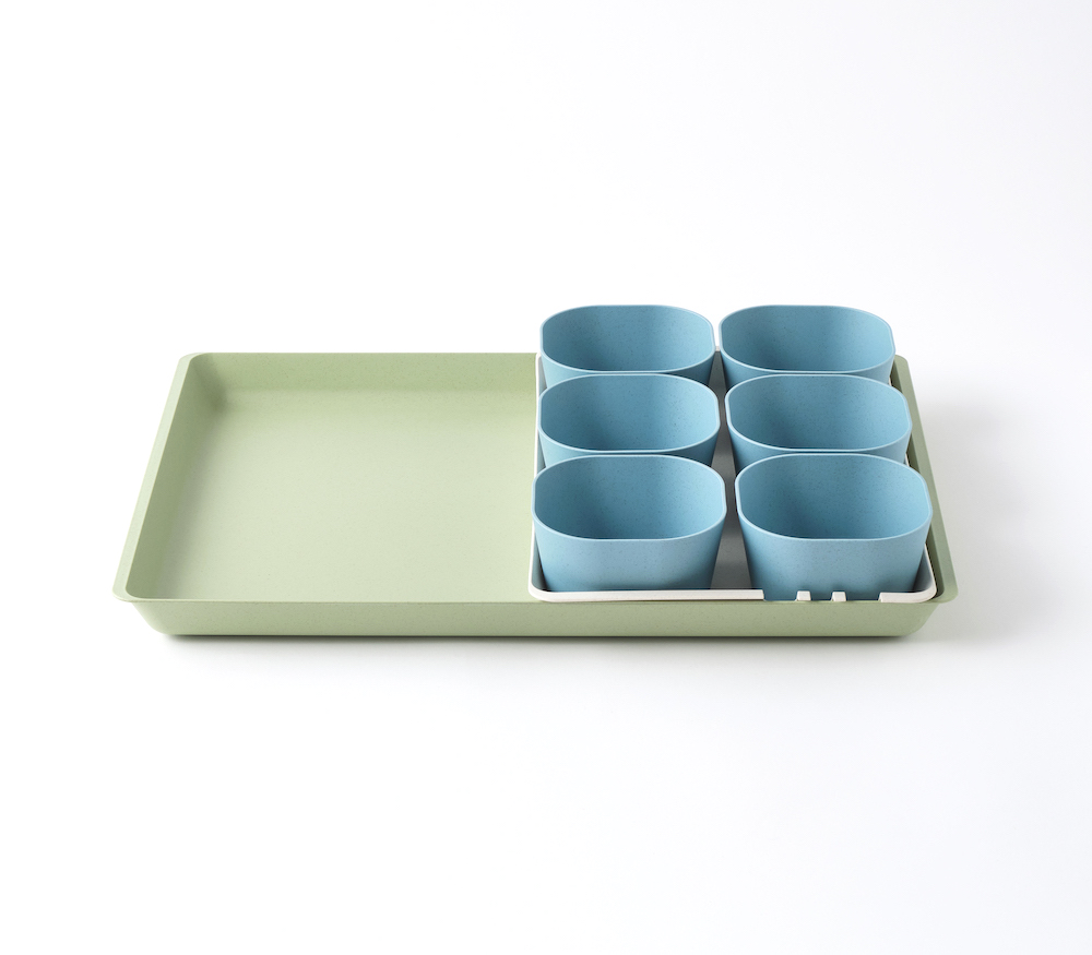 Prep, Carry, and Serve with the ultimate sustainable cooking organization tool. Set includes large carry tray, half utility tray, and 6 prep cups to help you Prep, Carry, and Serve. Use the large tray to move all the ingredients together to everything to a stove or grill, send the dirty trays and cups right to the dishwasher. Serve food directly in the elegant colorful trays.