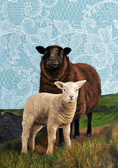 A masterfully detailed illustration that melds a graphic and an organic style. Pairing the sheep portrait with a decorative background generates a unique visual relationship.