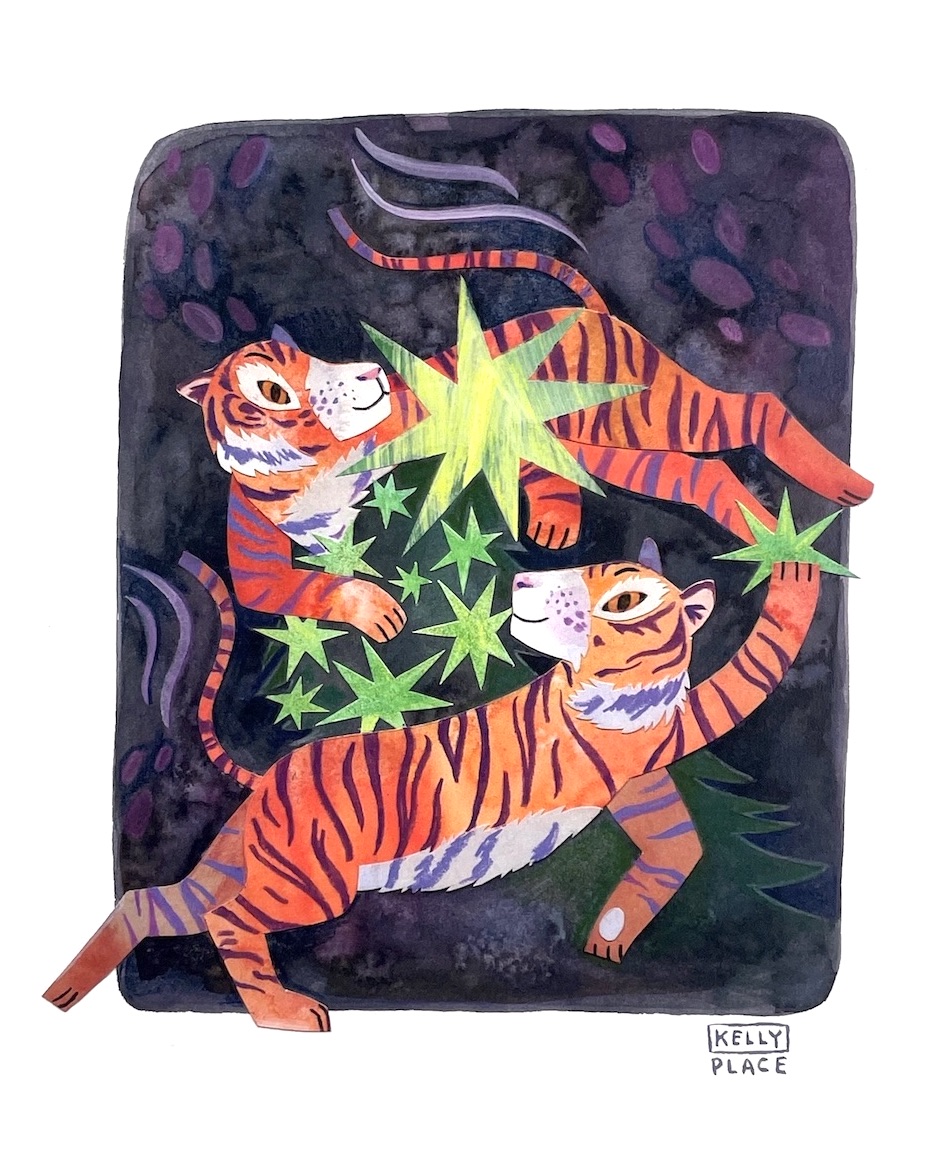 A playful take on one of our favorite subjects - tigers! This print is from the hand cut paper and collage original artwork.
