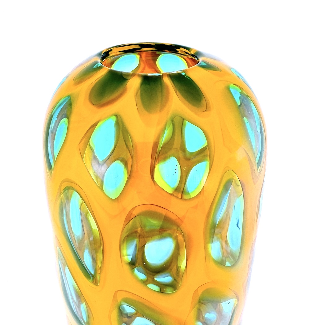 A tall, striking vase design that serves as a vessel for a bouquet of flowers or a stand alone art piece.
