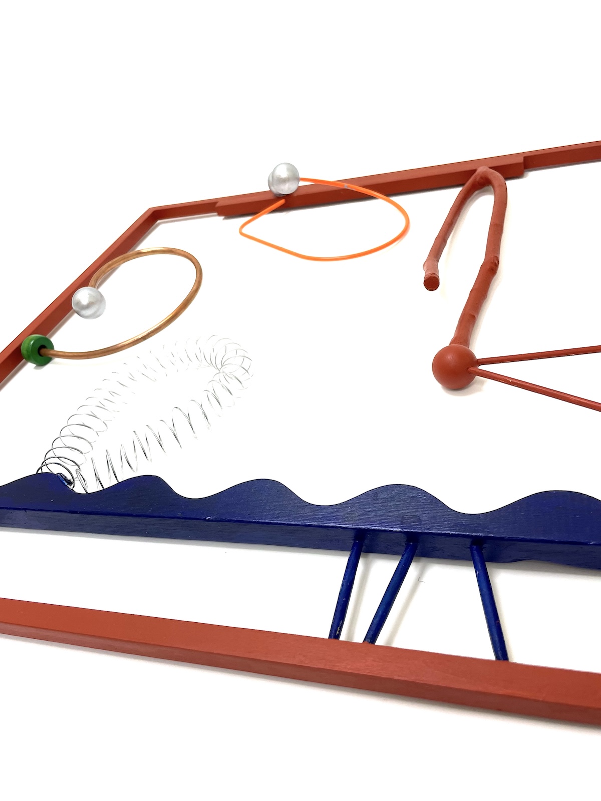 An intriguing, abstract hand carved and painted sculptural wall-hung form. Tarrant does not name her works to allow the viewer 'see' and interpret independently.