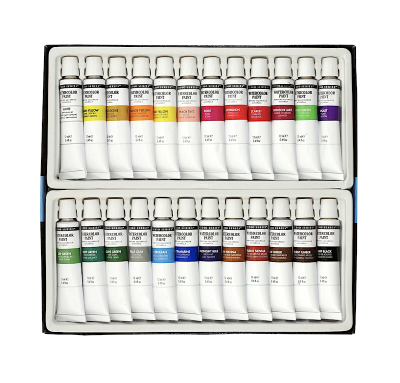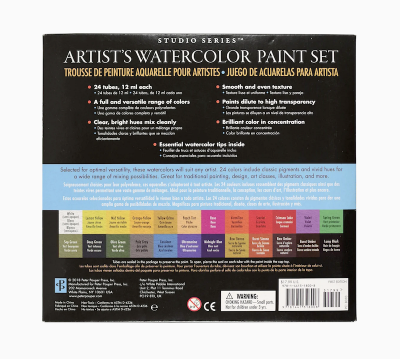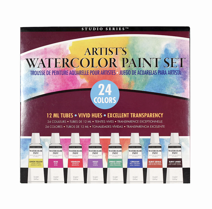 24 colors include classic pigments and vivid hues for a wide range of mixing possibilities. Great for traditional painting, design, art classes, illustration, and watercolor lettering.