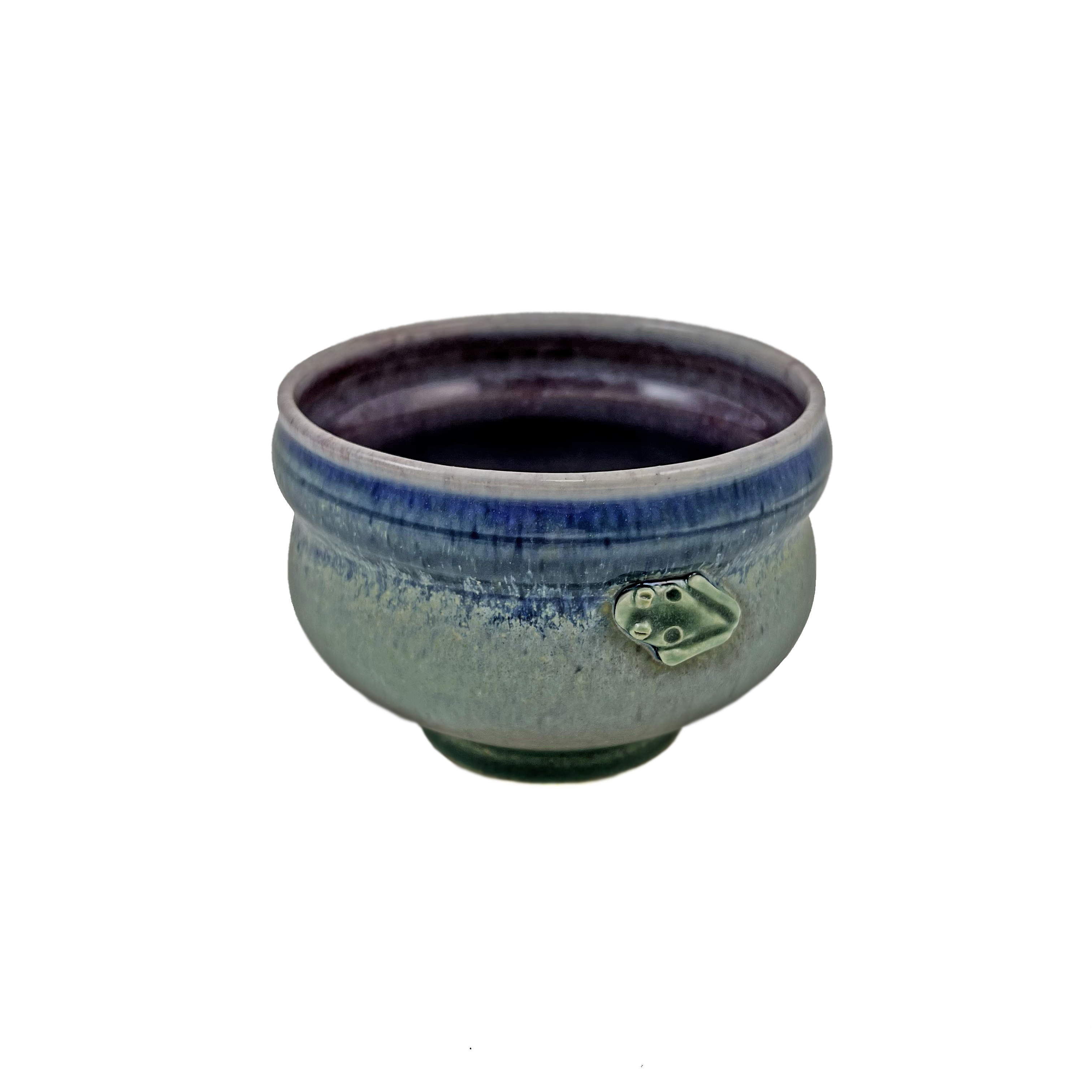 Yunomi is a style of Japanese teacup for daily tea drinking. Without the handle of a traditional teacup, Yunomi are made to be cradled. This form invites the warmth and aroma of your tea to be savored. Adorned with a tiny frog and glazed with a deep purple interior, this beautiful cup is perfect for a truly serene tea experience.
