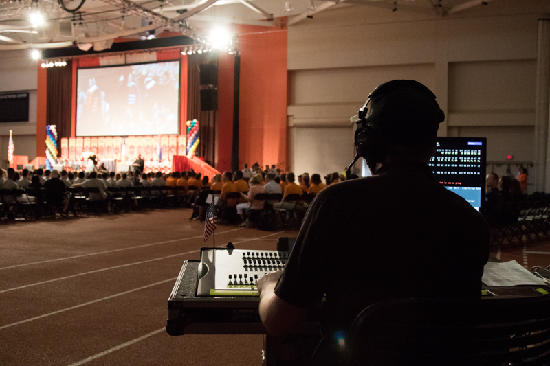Tech Crew’s parent department is the Center for Campus Life. Its primary mission is to support on-campus student activities and events. These events include, but are not limited to, dance parties, lectures, concerts and Commencement.