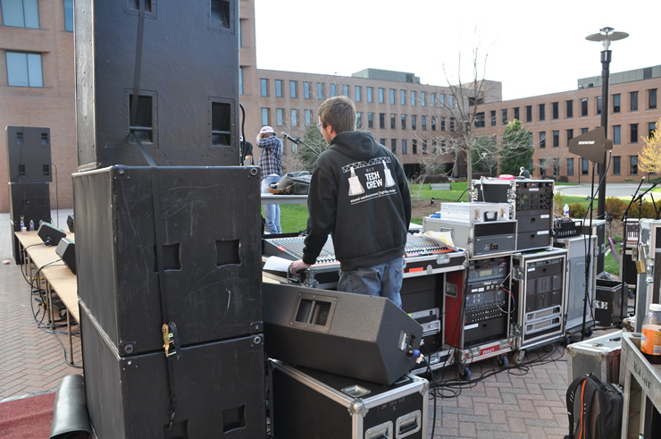 Tech Crew’s parent department is the Center for Campus Life. Its primary mission is to support on-campus student activities and events. These events include, but are not limited to, dance parties, lectures, concerts and Commencement.