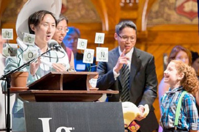 David Hu of the Georgia Institute of Technology presents “Eyelashes, Urination and Georgia Tech’s First Ig Nobel Prize” on Thursday. -