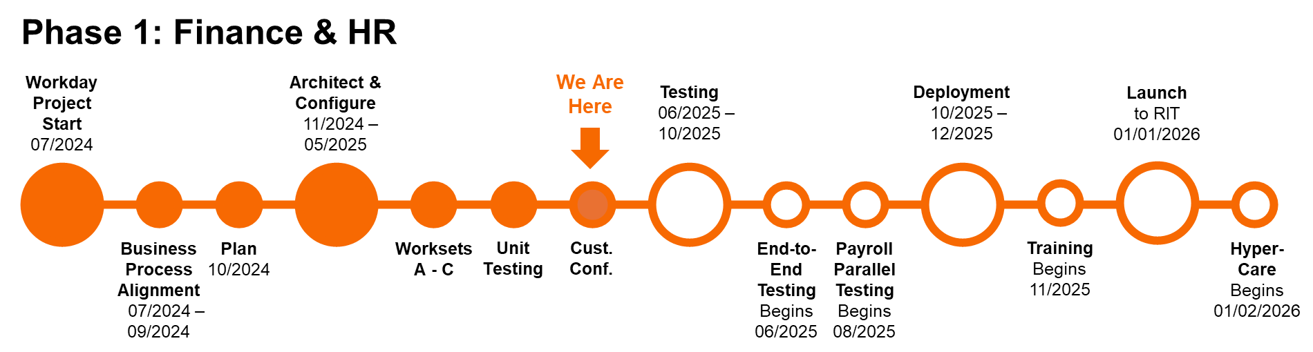 - University finances: All financial processes move to Workday, including gifts, grants, endowments, budgeting, and more.