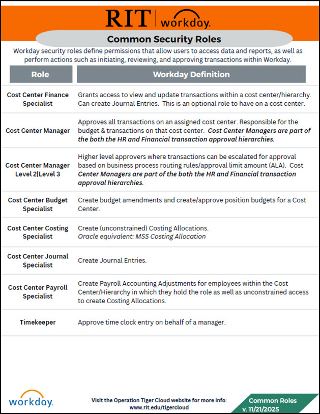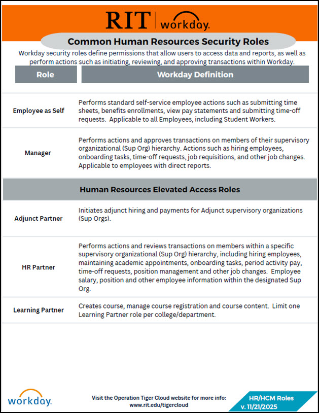 Descriptions of commonly-assigned HR/HCM roles in Workday.