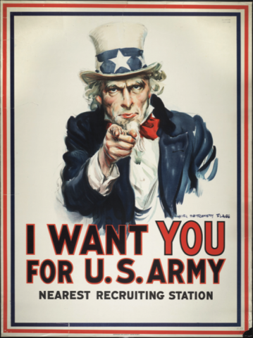 World War I began in Europe in 1914, but the United States maintained a policy of neutrality through the presidential election of 1916. Woodrow Wilson’s successful reelection captured America’s isolationist stance in the campaign slogan, “He Kept Us Out of War.” However, several events in early 1917 led to an American declaration of war on April 6, 1917. In order to justify this reversal of policy, Wilson had to convince the public that war was unavoidable, patriotic, and moral. One week later he created the Committee on Public Information (CPI), an agency dedicated to winning American hearts and minds to the cause of war through modern methods of mass persuasion. It was headed by journalist George Creel, who after the war described the committee’s work as a “vast enterprise in salesmanship, the world’s greatest adventure in advertising.”