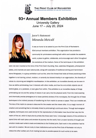 The Print Club of Rochester 93rd Annual Members Exhibition