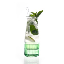 functionality. Mojitos happen to be my preferred cocktail, and crafting them involves a surprisingly scientific process. Unlike the common practice of shaking, which damages mint leaves and alters the taste, the ideal method involves building the drink directly in the glass. Rum, mint, lime, sugar, ice, soda water—each component was carefully considered. The glass features a ridged bottom section to separate the initial ingredients (rum, mint, lime, sugar) and a flared top that guides the addition of ice and soda water, also serving as a resting place for garnishes. Its substantial weight ensures stability and height, allowing for effortless sipping through a combined straw and stirrer, without concerns of tipping or fragility. Every detail—from size and weight to texture and color—was meticulously chosen to honor andenhance the Mojito experience.