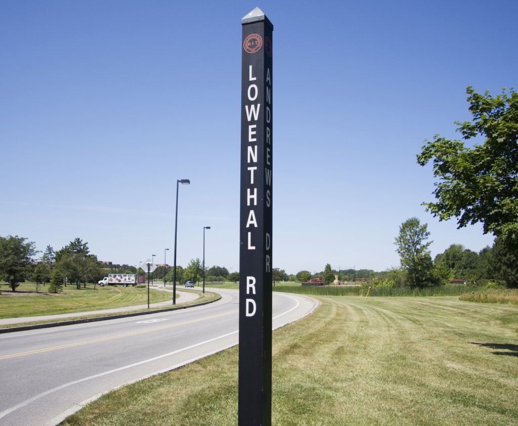 Lowenthal Road is one of the main entrances from Jefferson Road into the campus. It is named in honor of Max Lowenthal, who was one of the original founders and trustees of the Mechanics Institute. He founded the Rochester Knitting Works in 1868. Mr. Lowenthal also served on the Board of Trustees for 29 years (1885-1914).