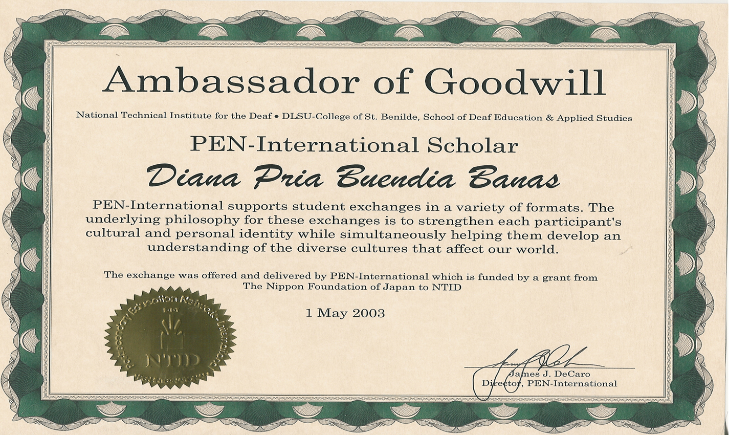 This is a certificate granted by Pen-Int'l and the Nippion Foundation from Japan